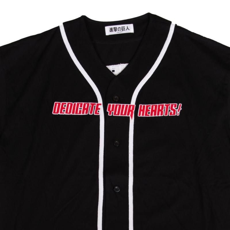 『進撃の巨人』ファン必見。比類なき戦闘力と冷静な判断力で、絶大な信頼を集める調査兵団の兵士長「リヴァイ」をフィーチャーした、インパクト抜群のベースボールシャツが登場。