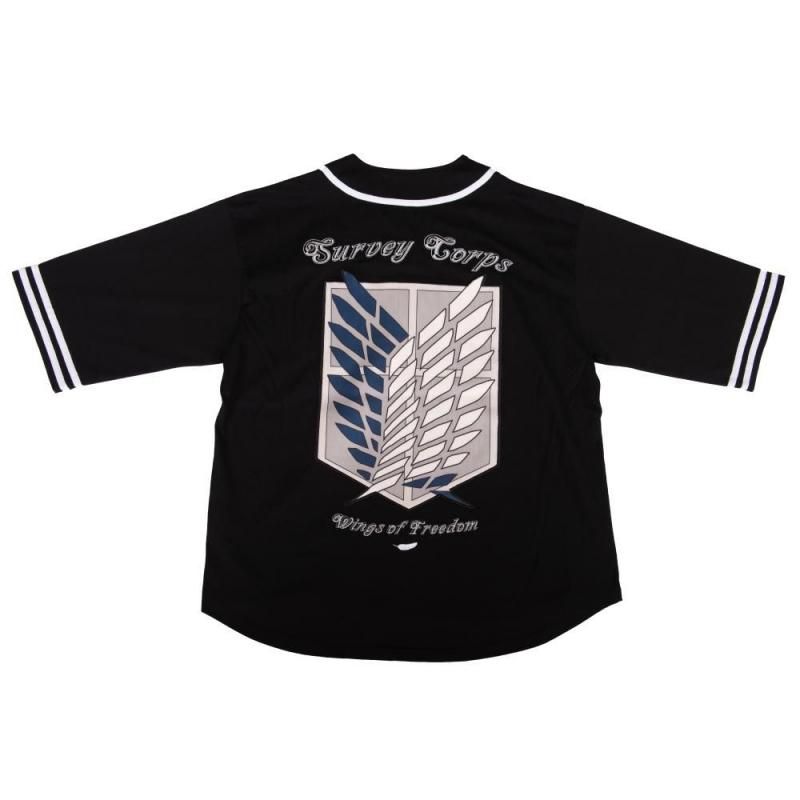 「進撃の巨人」公式ライセンスアイテム。調査兵団の象徴である“自由の翼”を背面に大きくデザインした、存在感抜群のビッグシルエット・ベースボールシャツが登場。