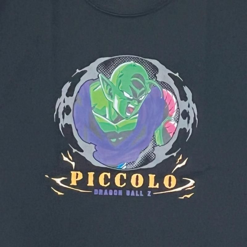 中央には、闘気をまとい鋭い眼光を放つピッコロの姿を大胆に配置。周囲を包む黒のエネルギーと雷光が、Z戦士としての覚醒を印象づけます。下部には力強く刻まれた「PICCOLO / DRAGON BALL Z」のロゴがブランド感を高め、ストリートファッションとも相性抜群の仕上がりに。