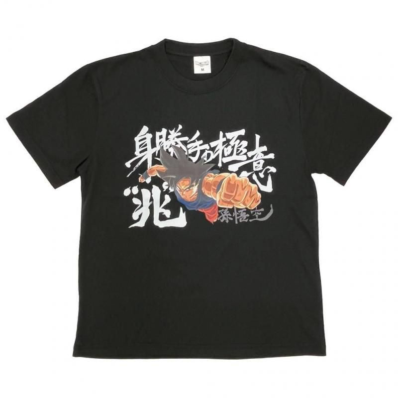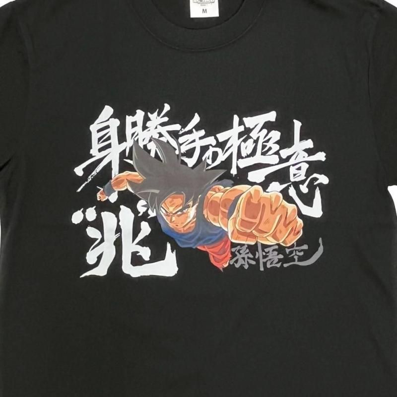 中央には、拳を突き出し全身から気を放つ悟空の姿。背後には「身勝手の極意“兆”」「孫悟空」の文字が筆で描かれたように力強くレイアウトされ、アニメファンはもちろん、ストリート系ファッションとしても着こなしやすい仕上がりになっています。