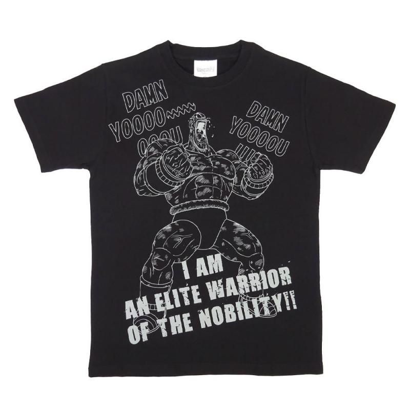 彼のセリフ「I AM AN ELITE WARRIOR OF THE NOBILITY!!(私は高貴なるエリート戦士だ!!)」のロゴは、力強いフォントとレイアウトで構成され、戦士としての誇りと屈辱を同時に感じさせる絶妙なデザインに仕上がっています。