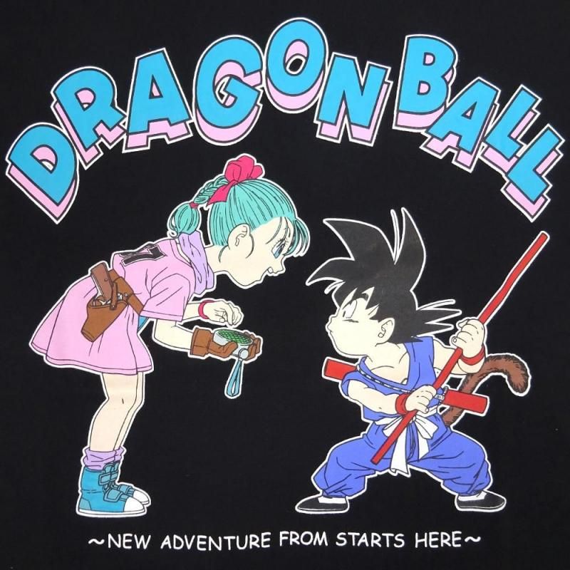 ドラゴンボールファン必見!悟空とブルマ、あの伝説の出会いのワンシーンが大胆にデザインされたTシャツが登場。鳥山明原作の初期「ドラゴンボール」の冒険感を存分に表現した、ポップでキュートなデザインが魅力です。