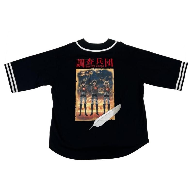 『進撃の巨人』ファン必見。調査兵団の誓い「心臓を捧げよ!」を胸に刻む、圧倒的な存在感を放つベースボールシャツが登場。