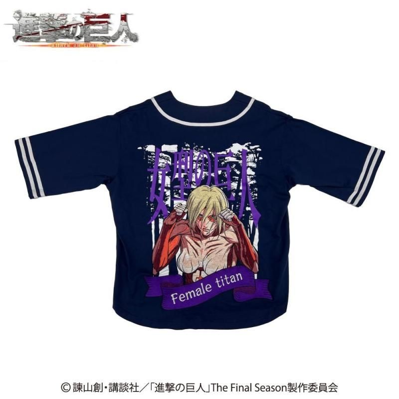 『進撃の巨人』に登場する「女型の巨人」が背中に大胆にプリントされた、存在感抜群のベースボールシャツが登場!