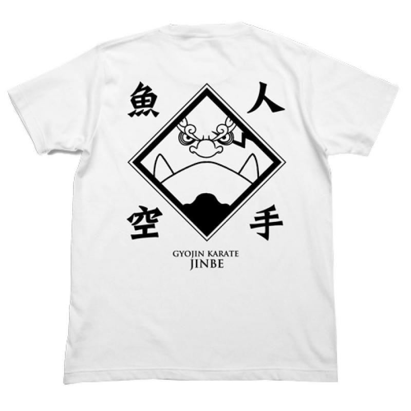 背面には「魚人空手」の文字とともに、ジンベエの力強くも威厳あるシルエットを印象的にデザイン。